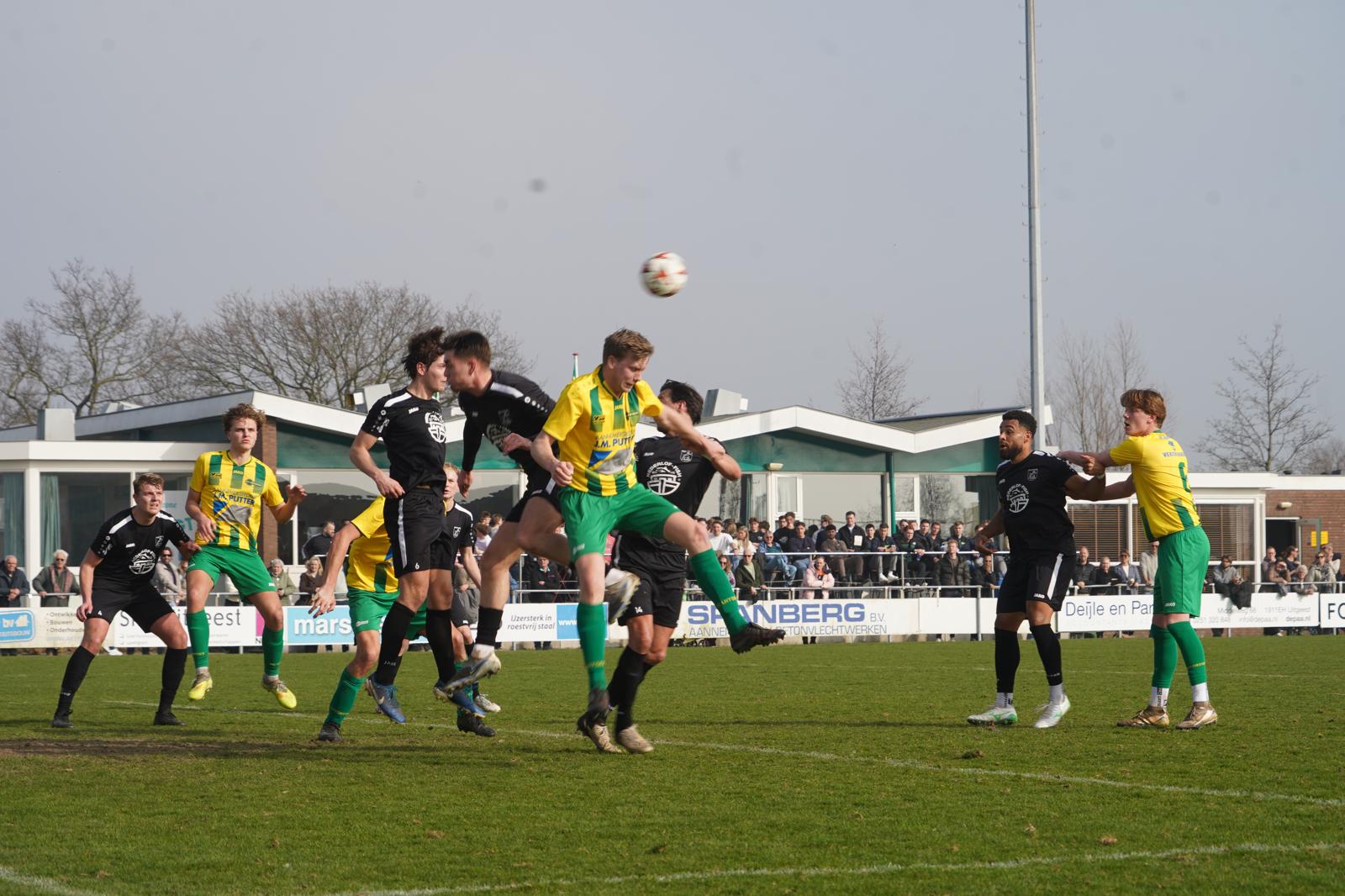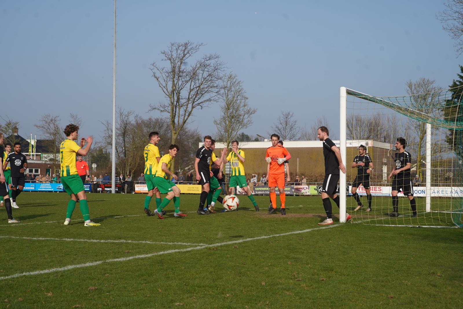 Daarna begon voor FC Uitgeest het grote ploeteren. Ze deden aandoenlijk hun best de mannen in het geelgroen ,maar het was simpelweg hun dag niet. Ballen stuiterden weg, eindpasses bij veelbelovende aanvallen konden net onderschept worden terwijl Velsen almaar gevaarlijker werd. Zo was in de 60e minuut invaller Looij dichtbij een tweede treffer voor de gasten uit Velsen en schoot even later Panka net over. Maar de thuisploeg gaf niet op, knokte voor elke bal en had een houding van “als het niet gaat zoals het moet, moet het maar zoals het gaat”. De beloning volgde in de 88e minuut. Want, als het even niet gaat, dan hebben we altijd nog de individuele klasse van onze Daan van den Booren. Heel handig speelde hij zich in het strafschopgebied vrij, maakte nog een schijnbeweging en schoot vervolgens tegendraads in de korte hoek raak. 1-1. Opluchting alom want zowel spelers als de vele toeschouwers (het was lekker druk) beseften heel goed dat het ene puntje vandaag tevens het maximaal haalbare was. Toch nog boven gekomen!